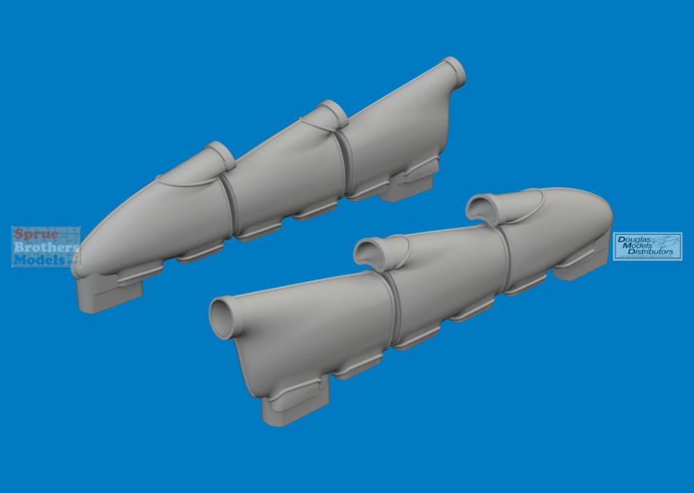 Brassin set exhaust stacks for Hurricane Mk.I in 1/48 scale.