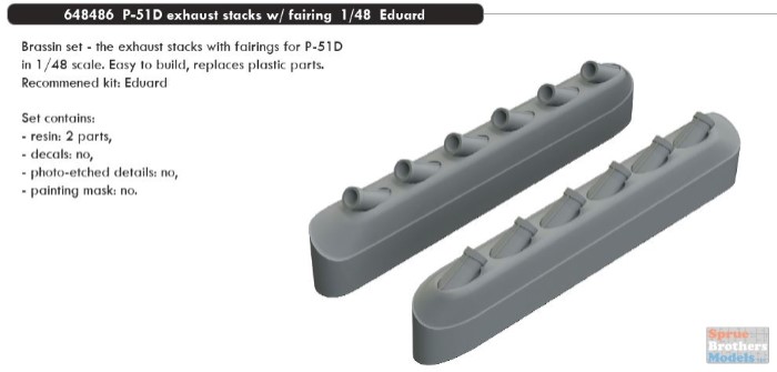 EDU648486 1:48 Eduard Brassin P-51D Mustang Exhaust Stacks with Fairing (EDU kit)