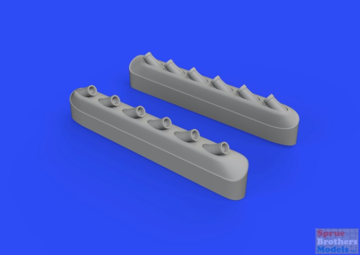 Brassin set - the exhaust stacks with fairings for P-51D in 1/48 scale. Easy to build, replaces plastic parts.