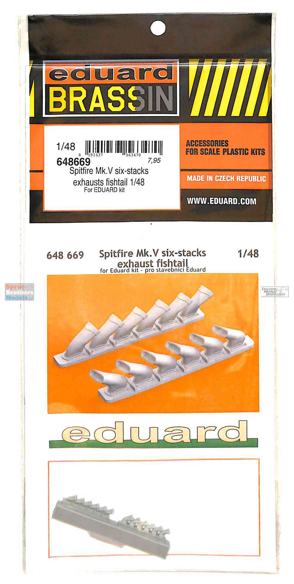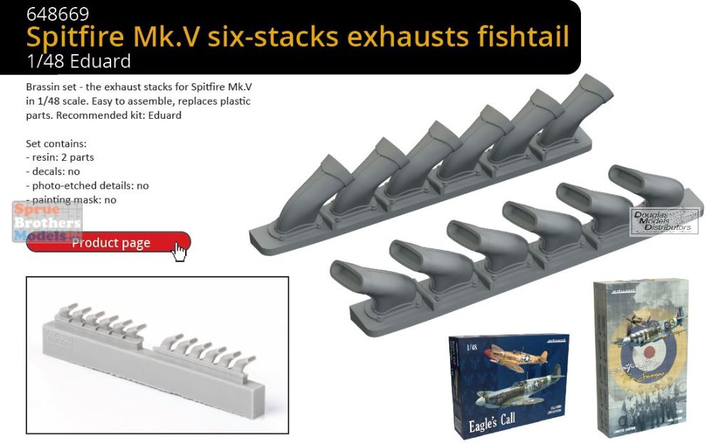 EDU648669 1:48 Eduard Brassin Spitfire Mk.V Six-Stacks Exhausts Fishtail (EDU Kit)
