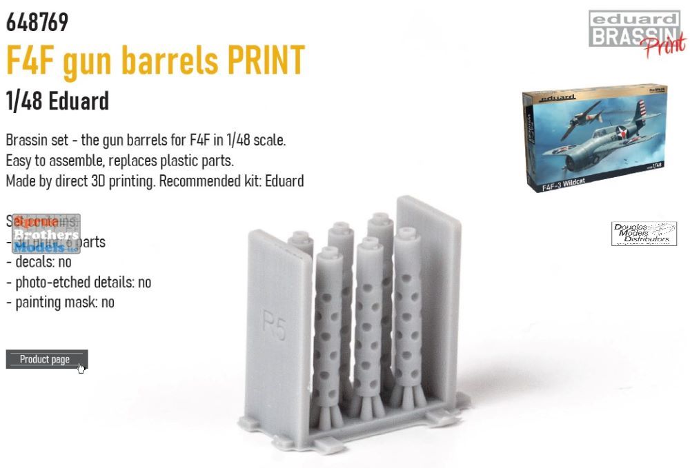 EDU648769 1:48 Eduard Brassin Print - F4F Wildcat Gun Barrels (EDU kit)