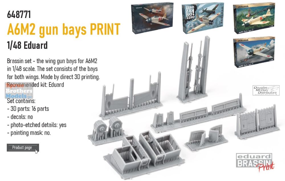 EDU648771 1:48 Eduard Brassin Print - A6M2 Zero Gun Bay Set (EDU kit)