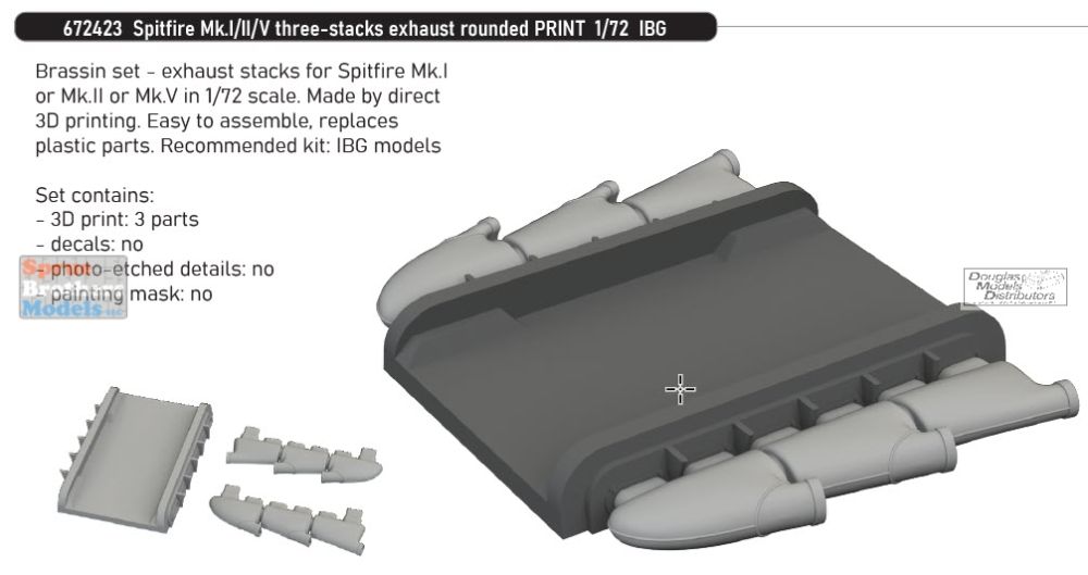 EDU672423 1:72 Eduard Brassin Spitfire Mk.I/II/V Three-Stacks Exhaust Rounded (IBG kit)