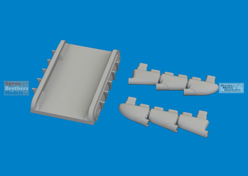 Brassin set exhaust stacks for Spitfire Mk.I or Mk.II or Mk.V in 1/72 scale.
