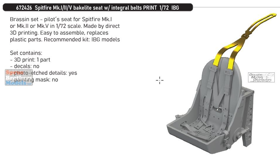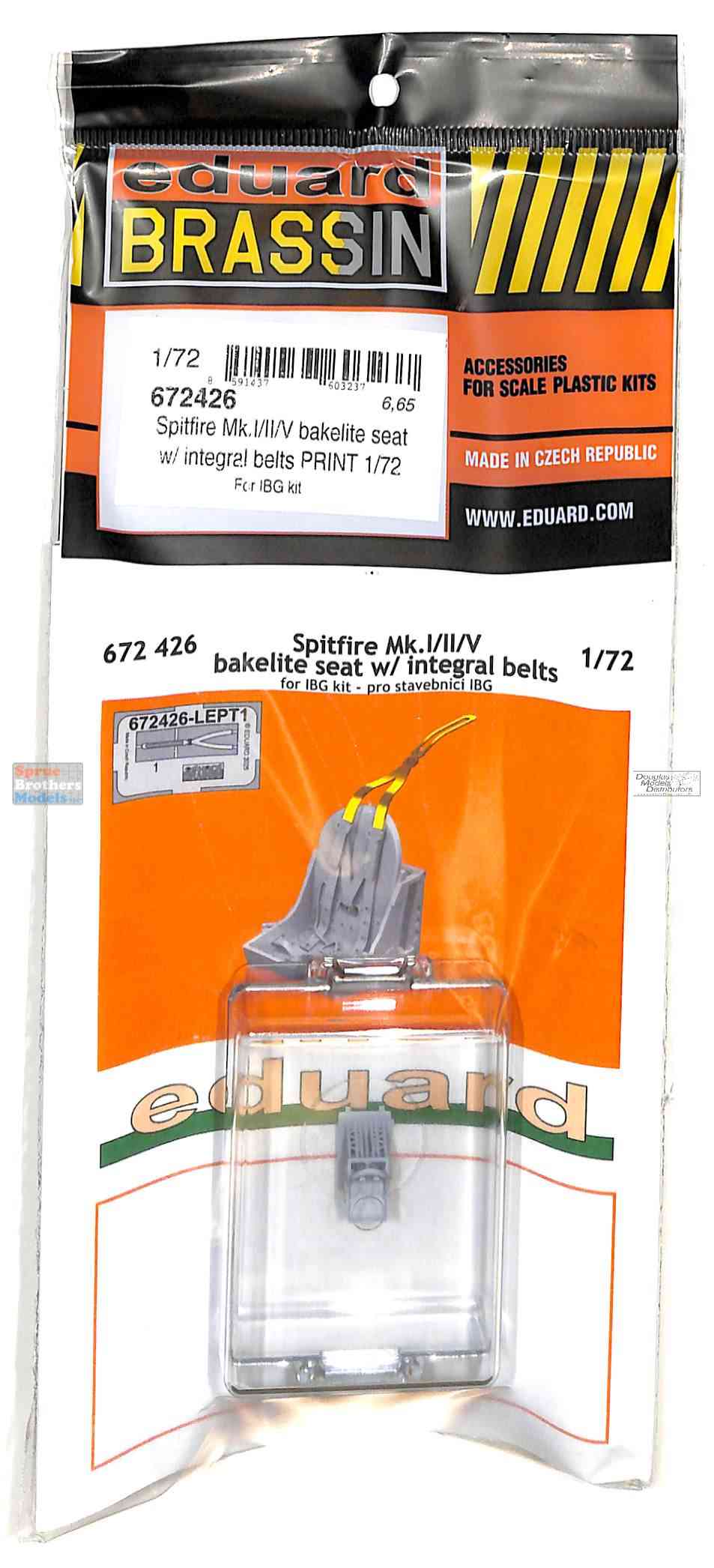 EDU672426 1:72 Eduard Brassin Spitfire Mk.I/II/V Bakelite Seat with Integral Seatbelts (IBG kit)