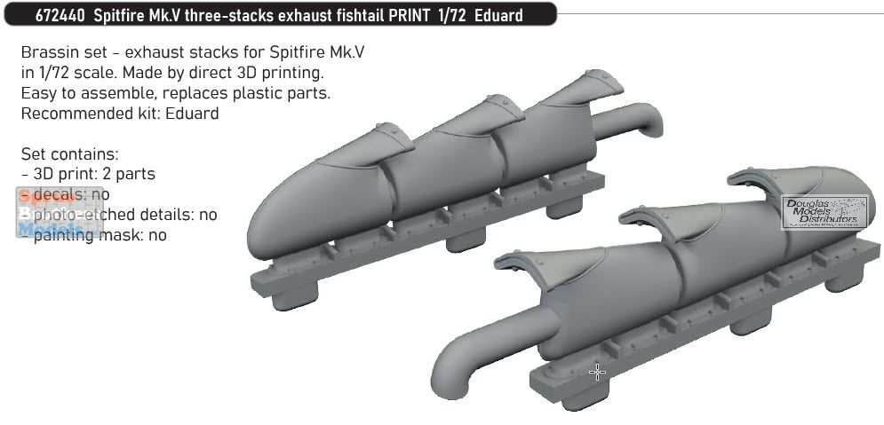 EDU672440 1:72 Eduard Brassin Spitfire Mk.V Three-Stacks Exhaust Fishtail (EDU kit)