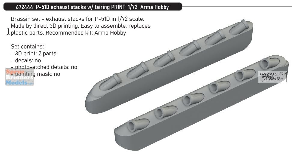 EDU672444 1:72 Eduard Brassin P-51D Mustang Exhaust Stacks with Fairing (ARM kit)