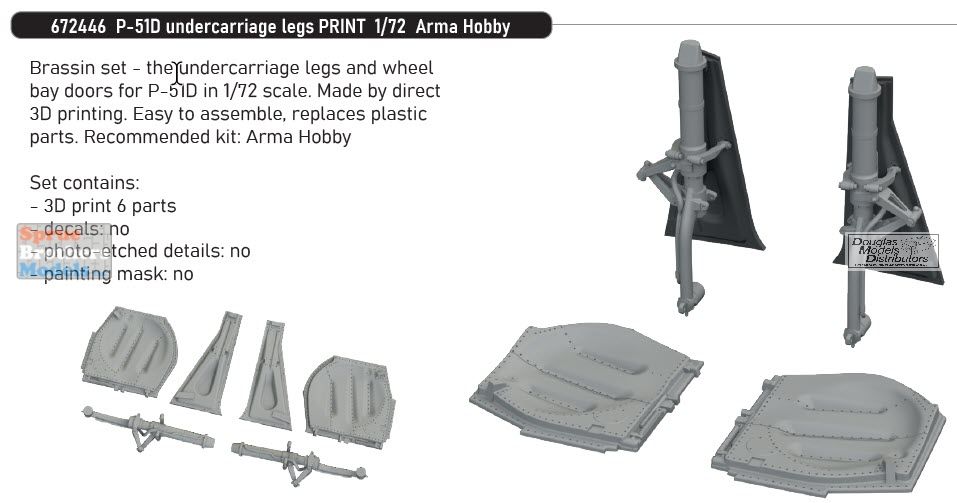 Brassin set the undercarriage legs and wheel bay doors for P-51D in 1/72 scale.