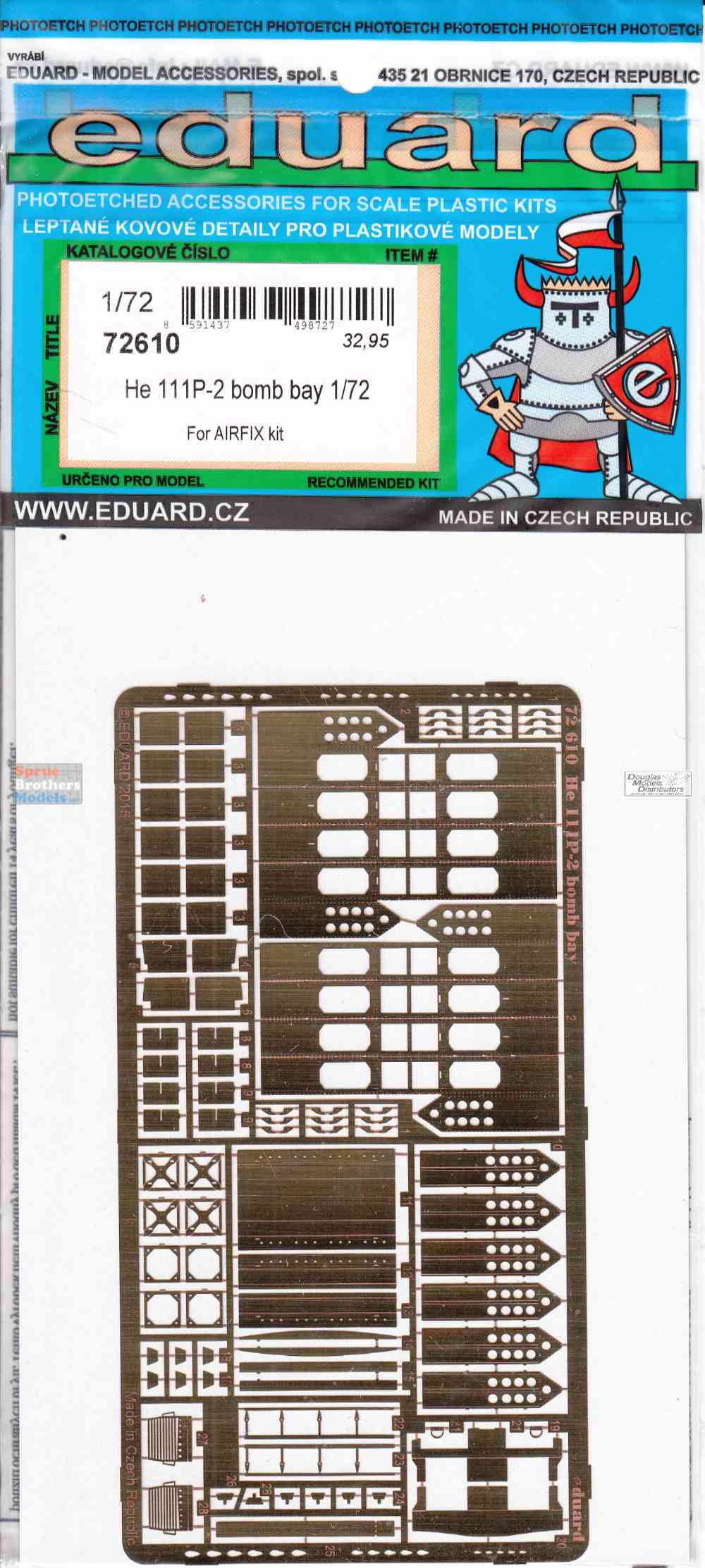 EDU72610 1:72 Eduard PE - He 111P-2 Exterior Bomb Bay (AFX kit)