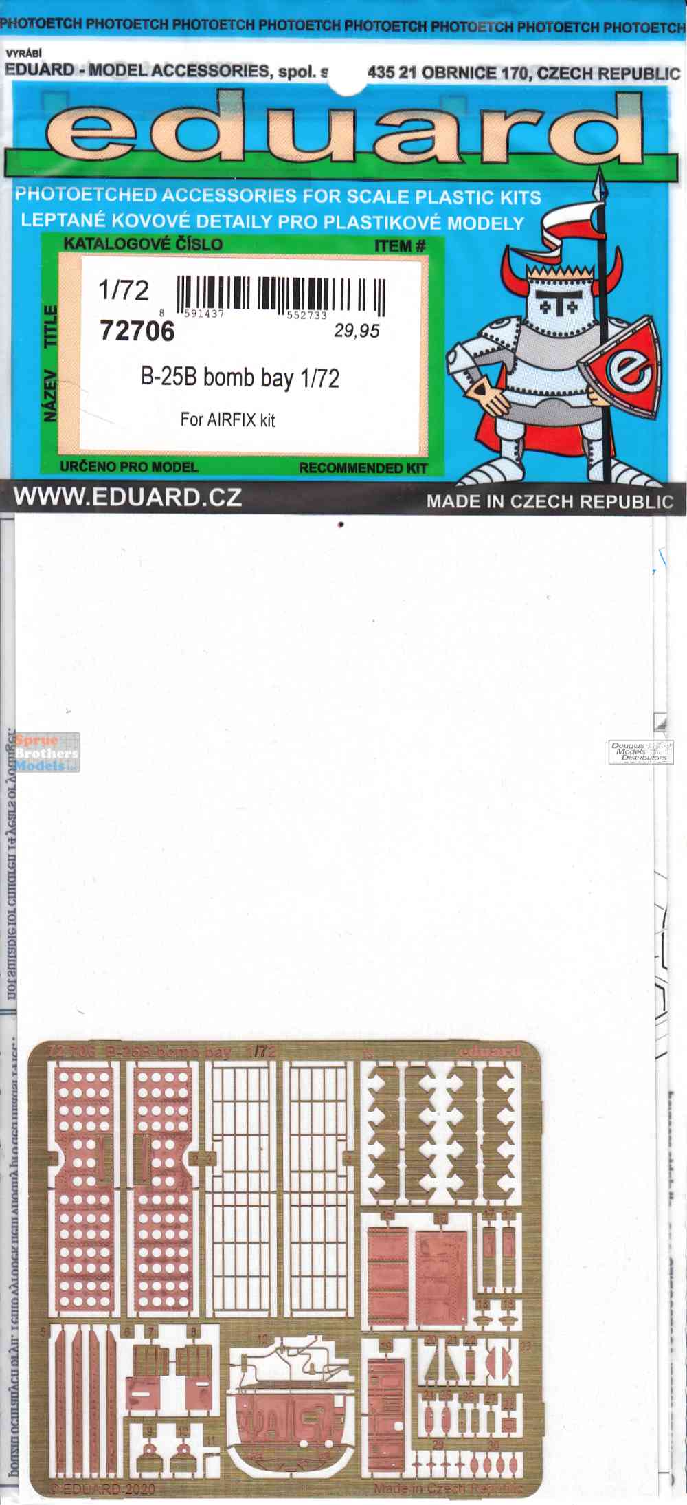 EDU72706 1:72 Eduard PE - B-25B Mitchell Bomb Bay Detail Set (AFX kit)