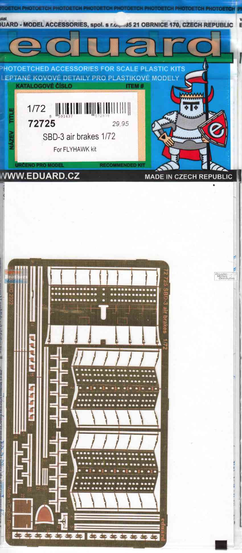 EDU72725 1:72 Eduard PE - SBD-3 Dauntless Air Brakes Set (FLH kit)