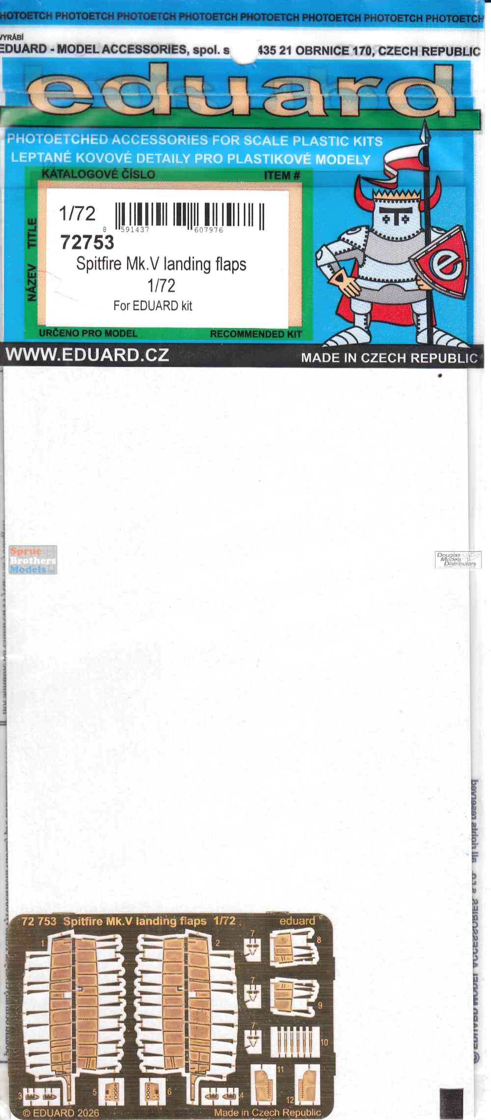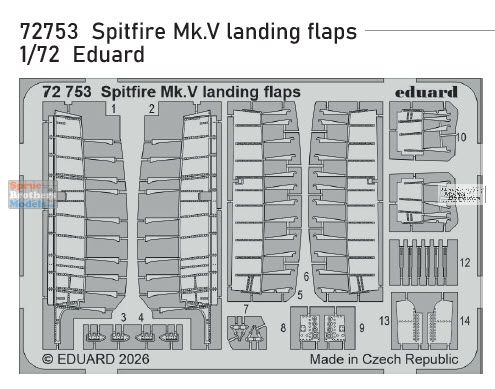 EDU72753 1:72 Eduard PE - Spitfire Mk.V Landing Flaps (EDU kit)
