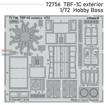 EDU72756 1:72 Eduard PE - TBF-1C Avenger Exterior Detail Set (HBS kit)