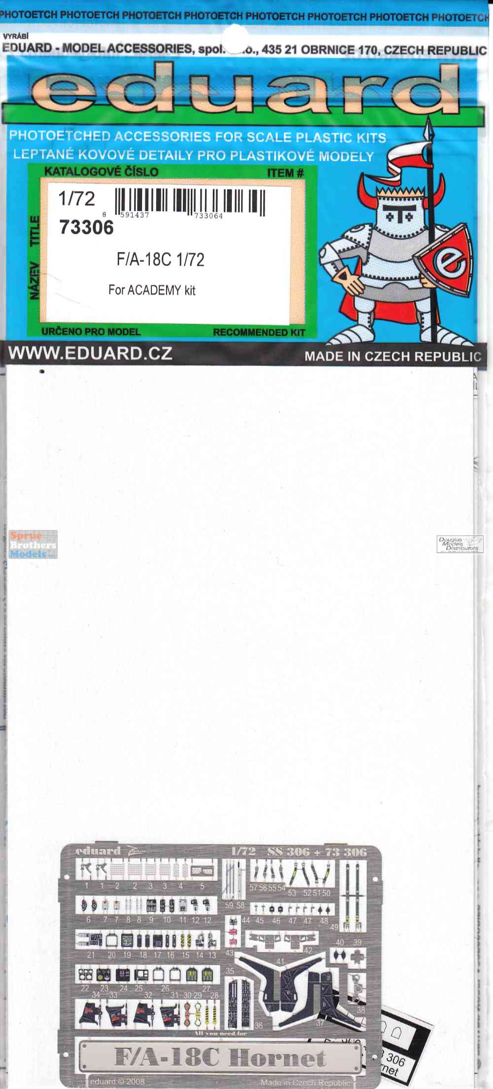 EDU73306 1:72 Eduard Color PE - F-18C Hornet Detail Set (ACA kit)
