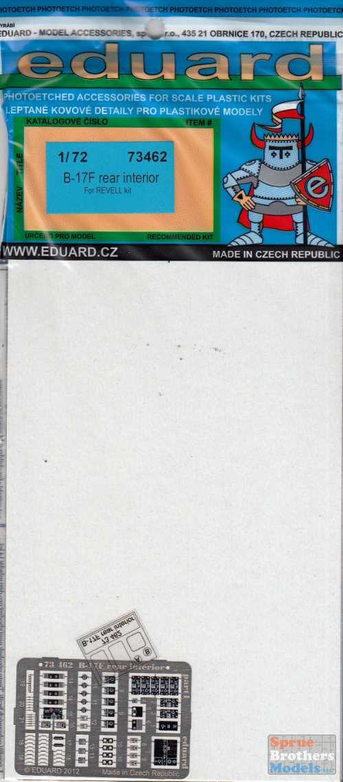 EDU73462 1:72 Eduard Color PE - B-17F Flying Fortress Rear Interior (REV kit)