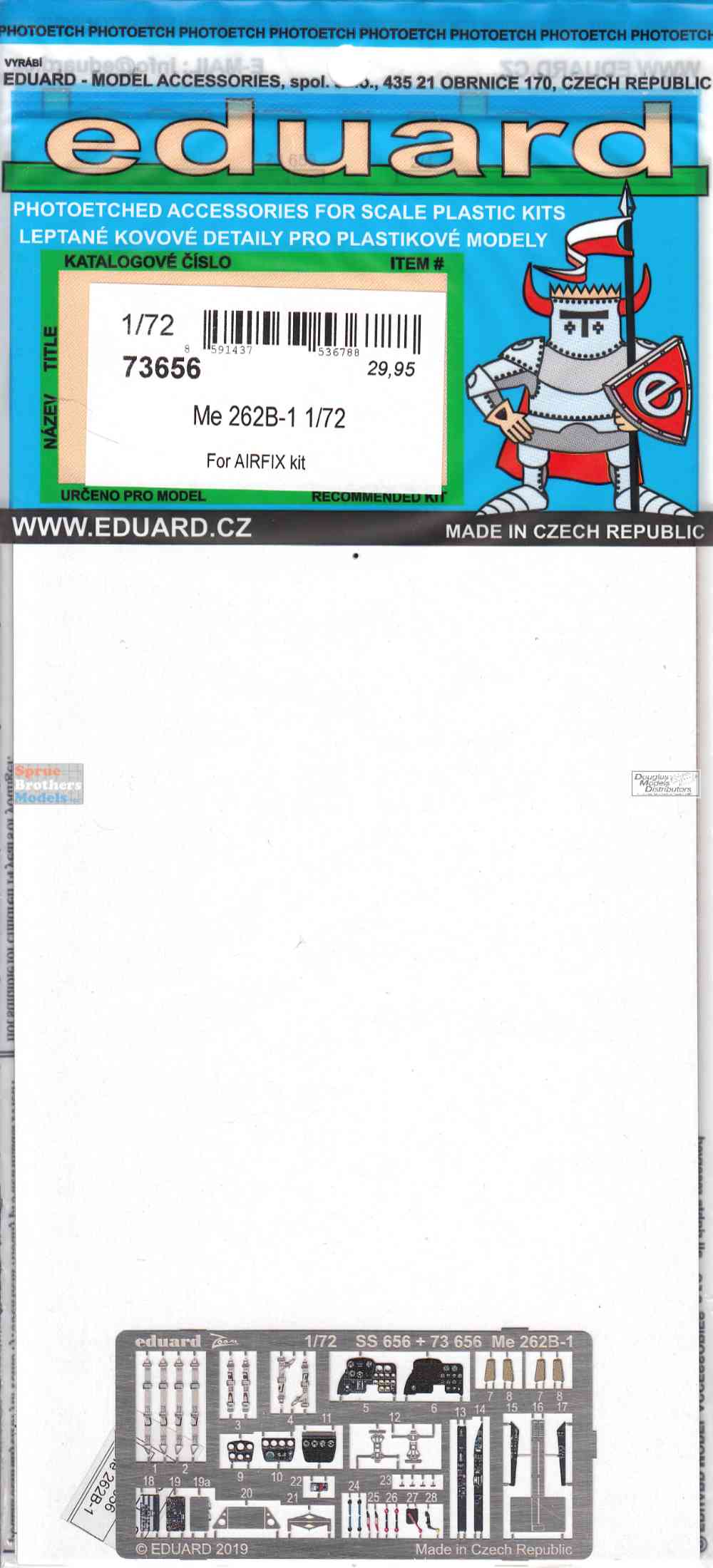 EDU73656 1:72 Eduard Color PE - Me 262B-1 Detail Set (AFX kit)