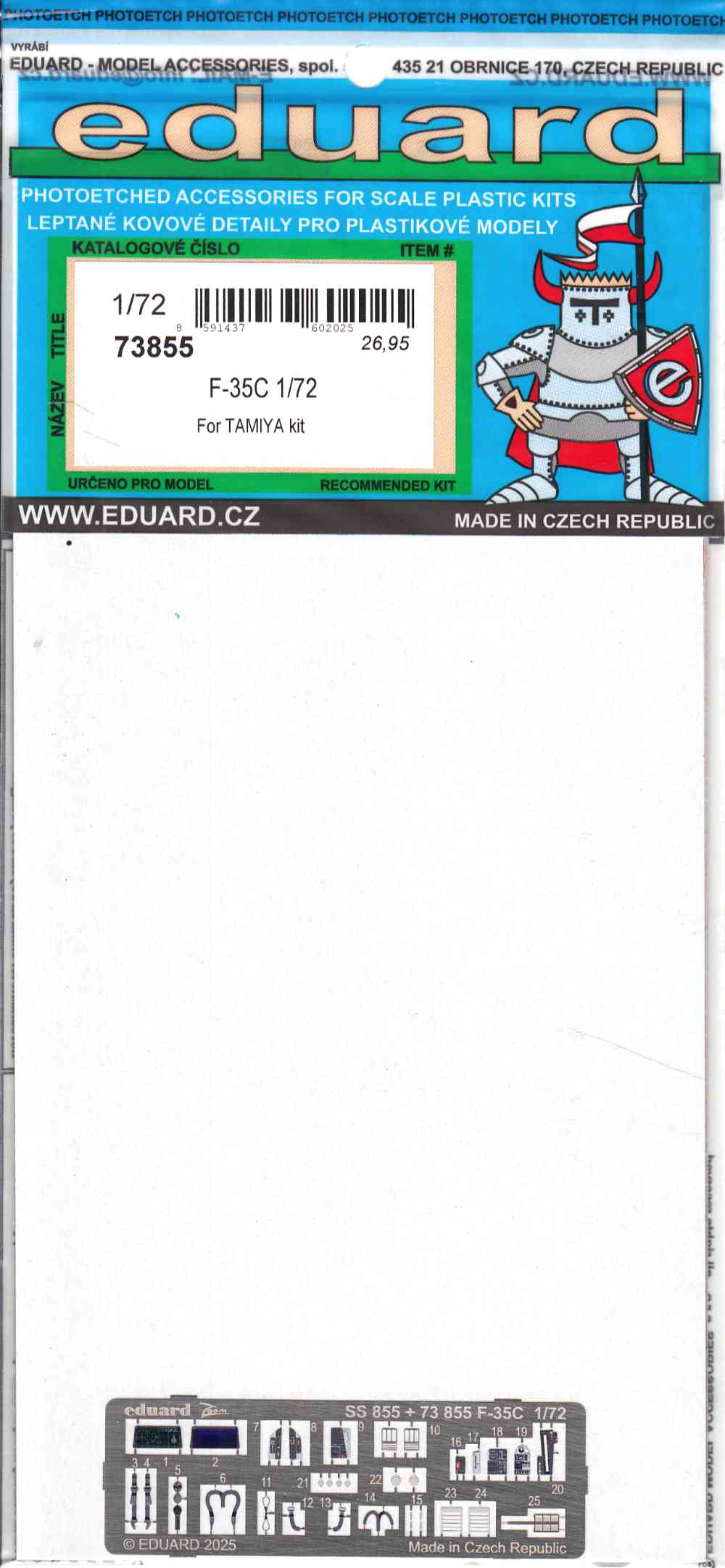 EDU73855 1:72 Eduard Color PE - F-35C Lightning II Detail Set (TAM kit)