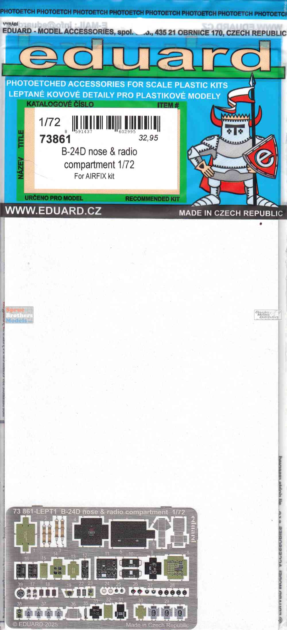 EDU73861 1:72 Eduard Color PE - B-24D Liberator Nose & Radio Compartment Detail Set (AFX kit)