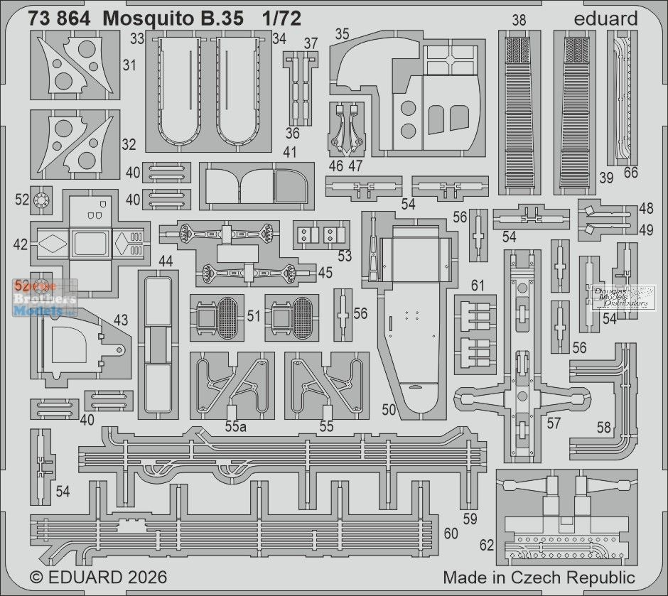 EDU73864 1:72 Eduard Color PE - Mosquito B.35 Detail Set (AFX kit)