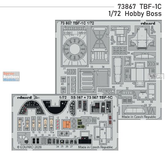 EDU73867 1:72 Eduard Color PE - TBF-1C Avenger Detail Set (HBS kit)