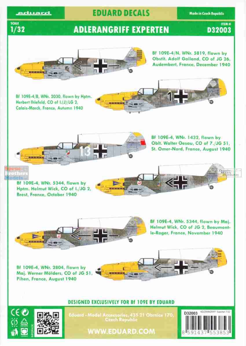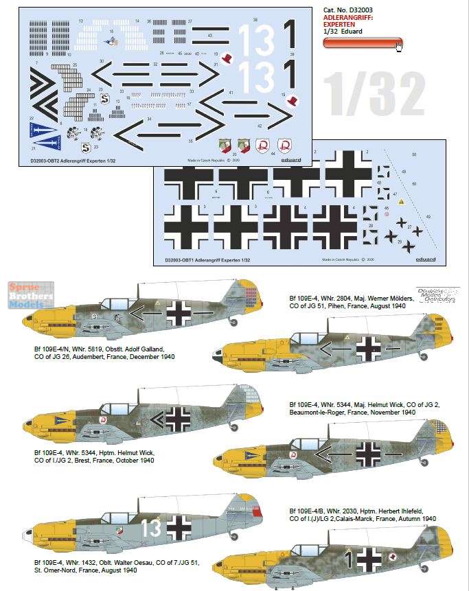 EDUD32003 1:32 Eduard Decals - Bf 109E-4 ADLERANGRIFF: Experten