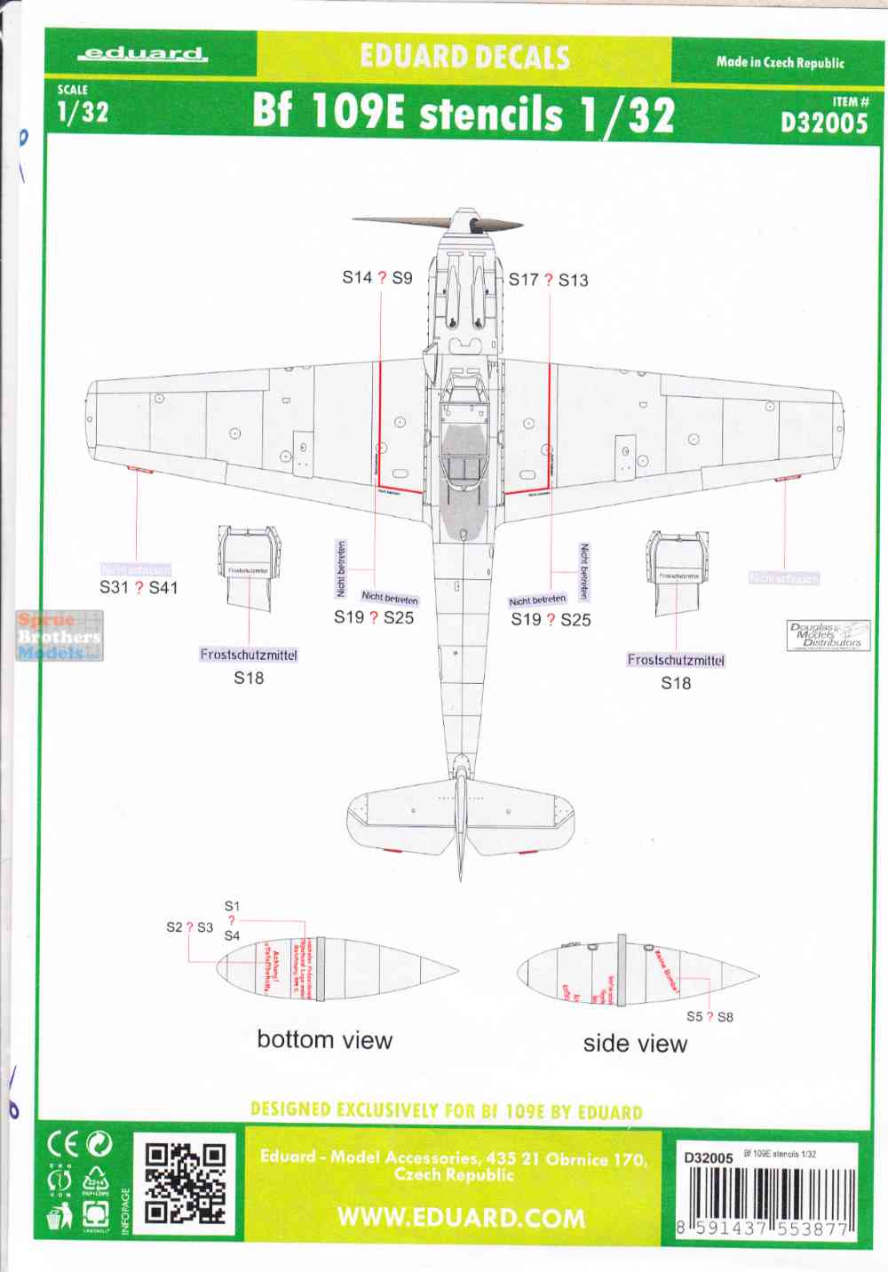 EDUD32005 1:32 Eduard Decals - Bf 109E Stencils
