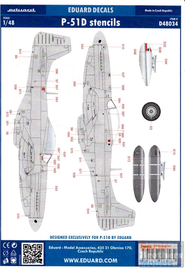 EDUD48034 1:48 Eduard Decals - P-51D Mustang Stencils