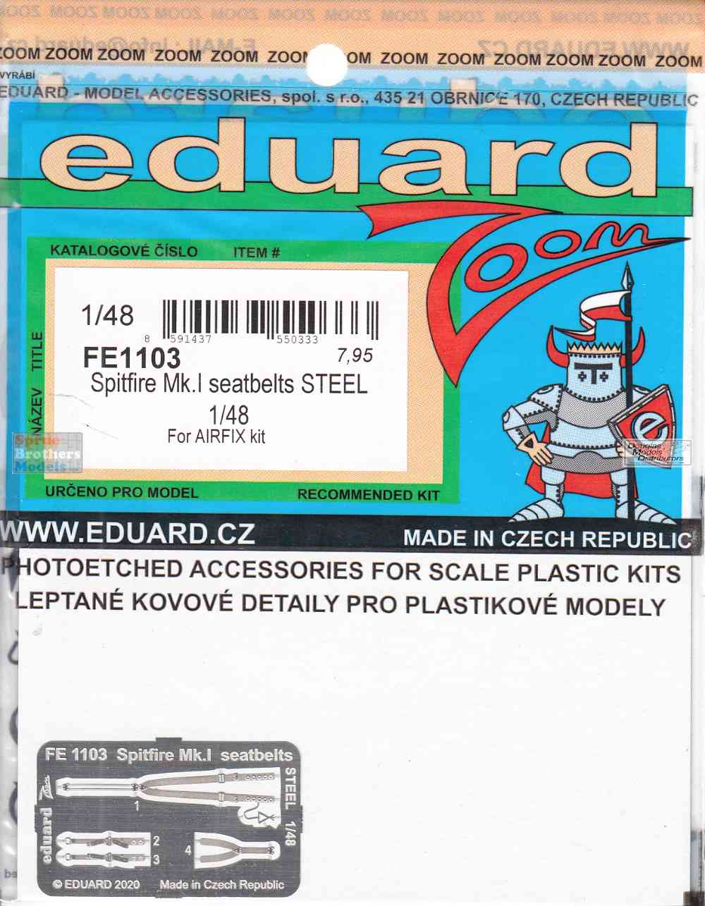 EDUFE1103 1:48 Eduard Color Zoom PE - Spitfire Mk.I Seatbelts [STEEL] (AFX kit)