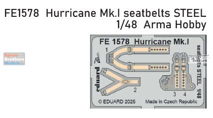 EDUFE1578 1:48 Eduard Color Zoom PE - Hurricane Mk.I Seatbelts (ARM kit)