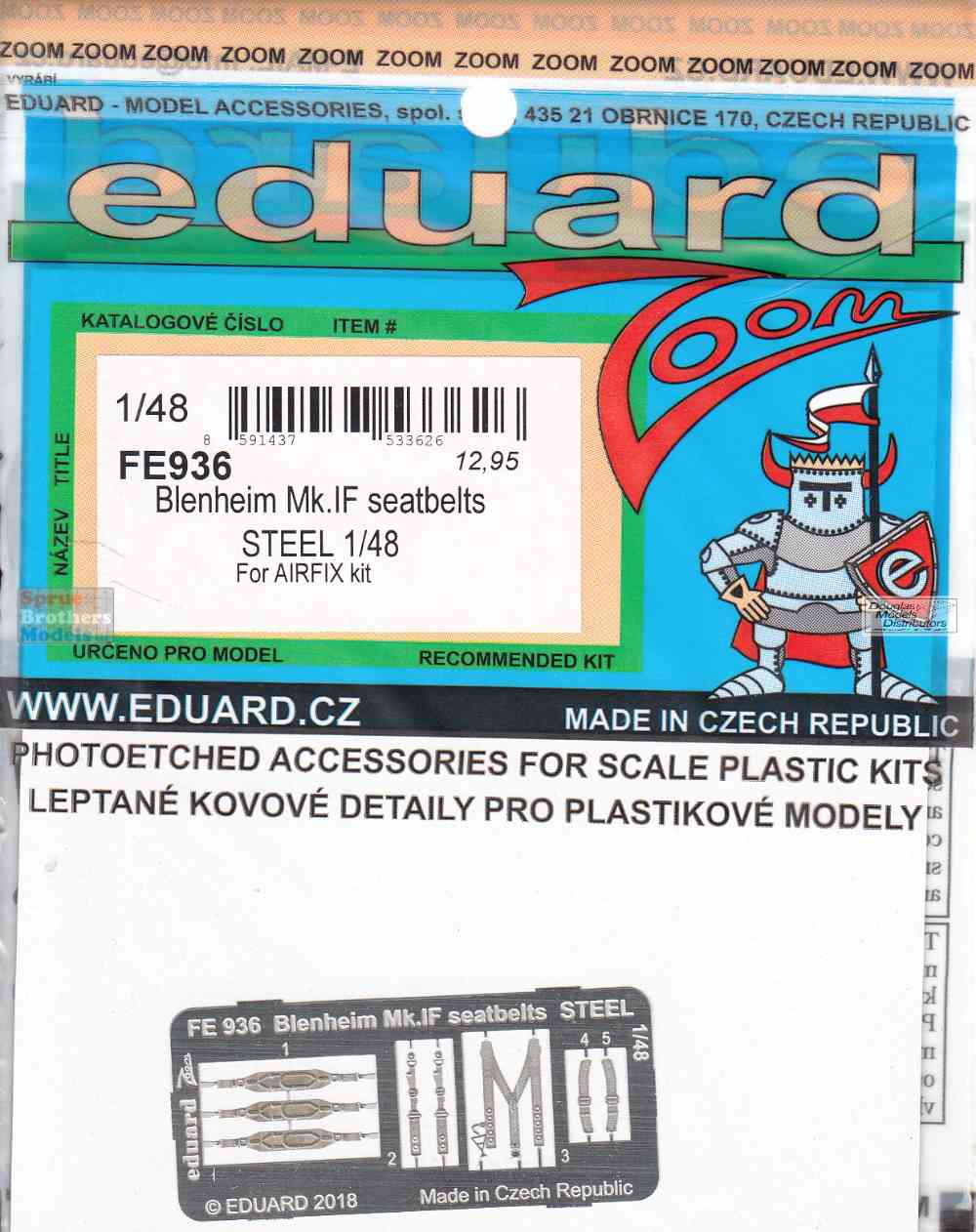 EDUFE936 1:48 Eduard Color Zoom PE - Blenheim Mk.IF Seatbelts [STEEL] (AFX kit)