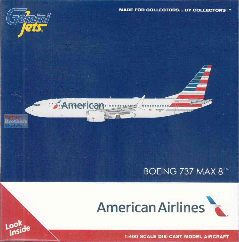 GEMGJ2358 1:400 Gemini Jets American Airlines B737 Max 8 Reg #N326RP (pre-painted/pre-built)