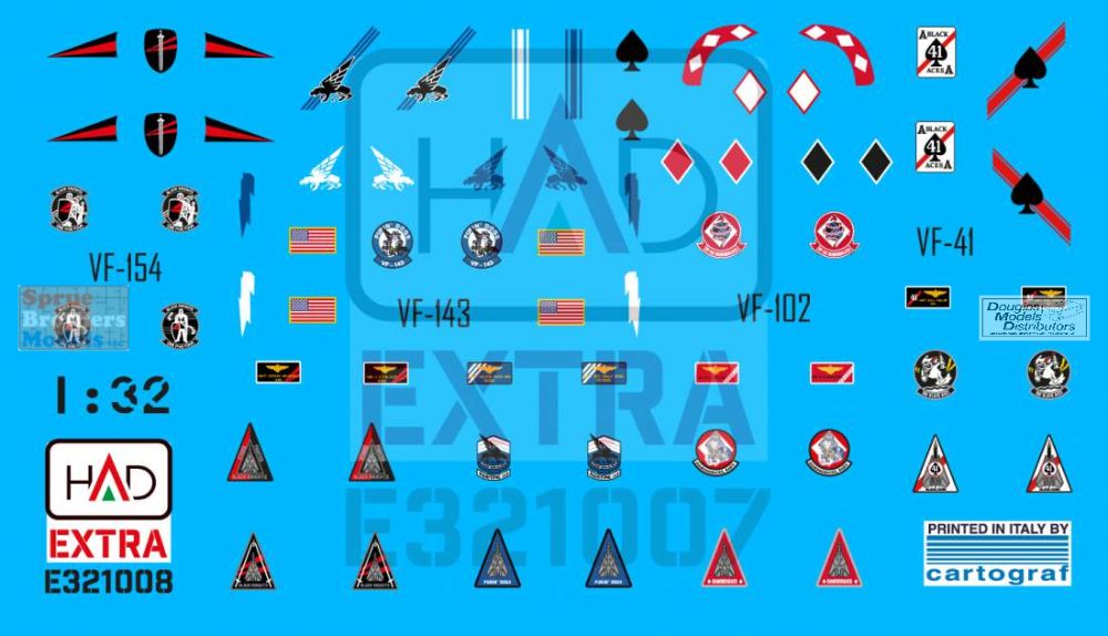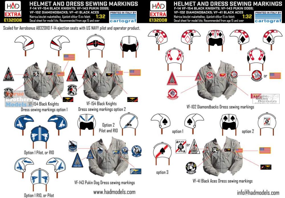 HADE321008 1:32 HAD Models Decals - F-14A F-14D Tomcat Helmet & Dress Sewing Markings for VF-143 VF-213 VF-41