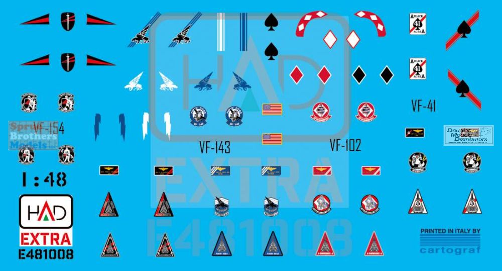 HADE481008 1:48 HAD Models Decals - F-14A F-14D Tomcat Helmet & Dress Sewing Markings for VF-143 VF-213 VF-41