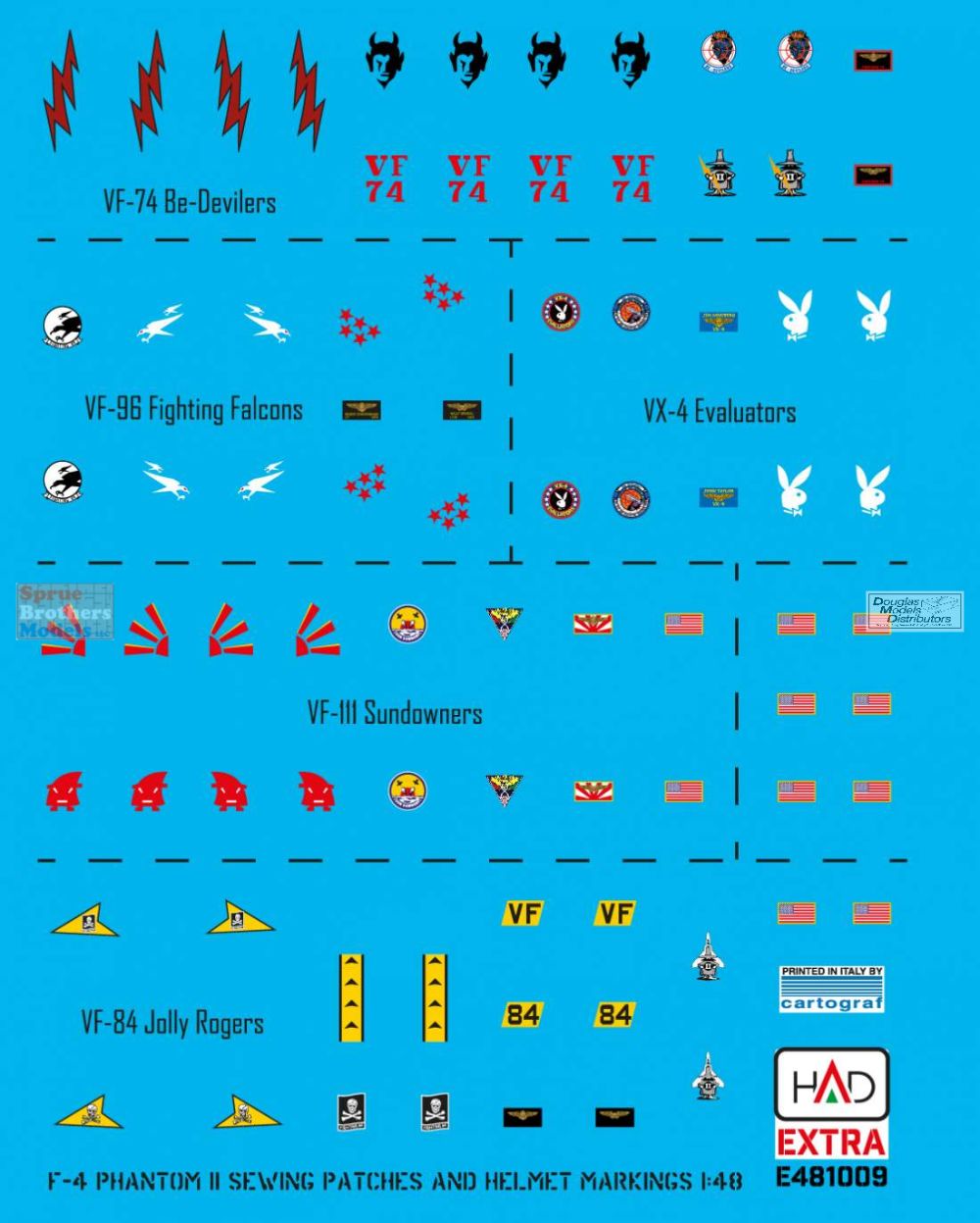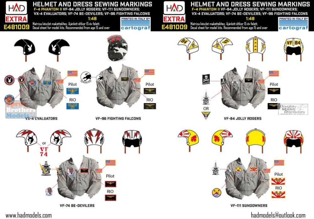 HADE481009 1:48 HAD Models Decals - F-4 Phantom II Helmet & Dress Sewing Markings for VF-84 VF-111 VX-4 VF-74 VF-96
