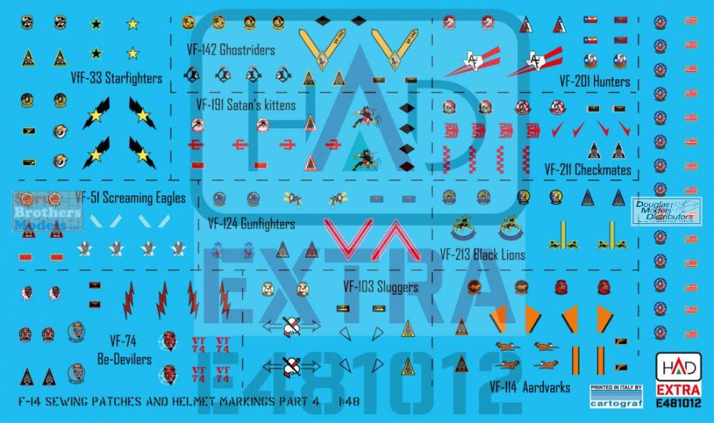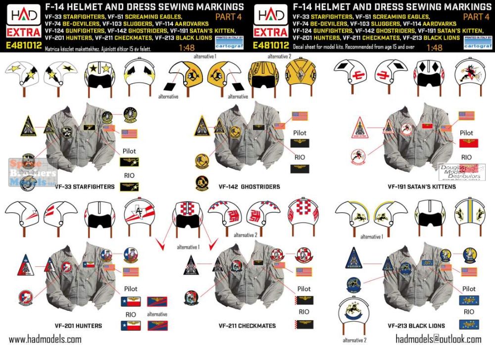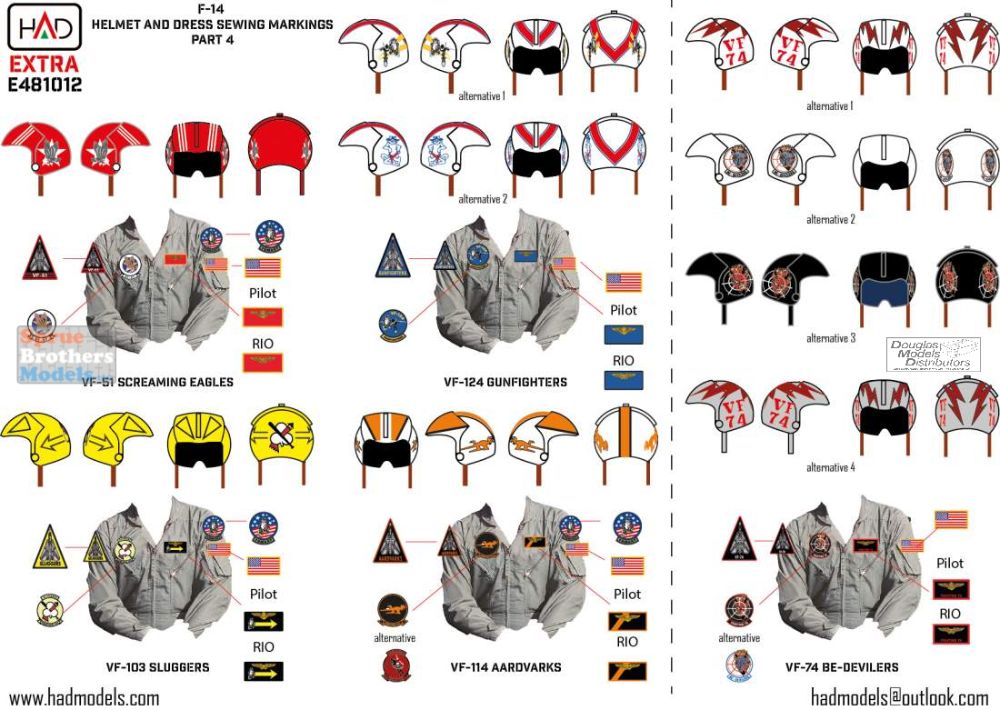 HADE481012 1:48 HAD Models Decals - F-14 Tomcat Helmet & Dress Sewing Markings for VF-33 VF-51 VF-74 VF-103 VF-114 VF-124 VF-142 VF-191 VF-201 VF-211 VF-213
