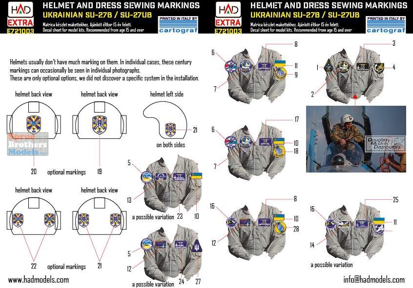 HADE721003 1:72 HAD Models Decals - Ukrainian Su-27B Su-27UB Flanker Helmet & Dress Sewing Markings
