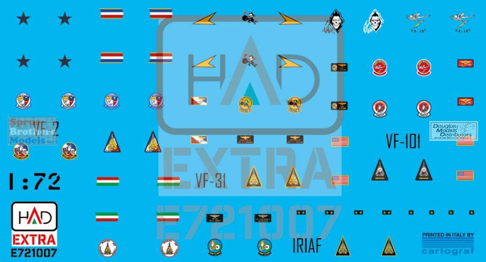 HADE721007 1:72 HAD Models Decals - F-14A F-14D Tomcat Helmet & Dress Sewing Markings for VF-2 VF-101 VF-31