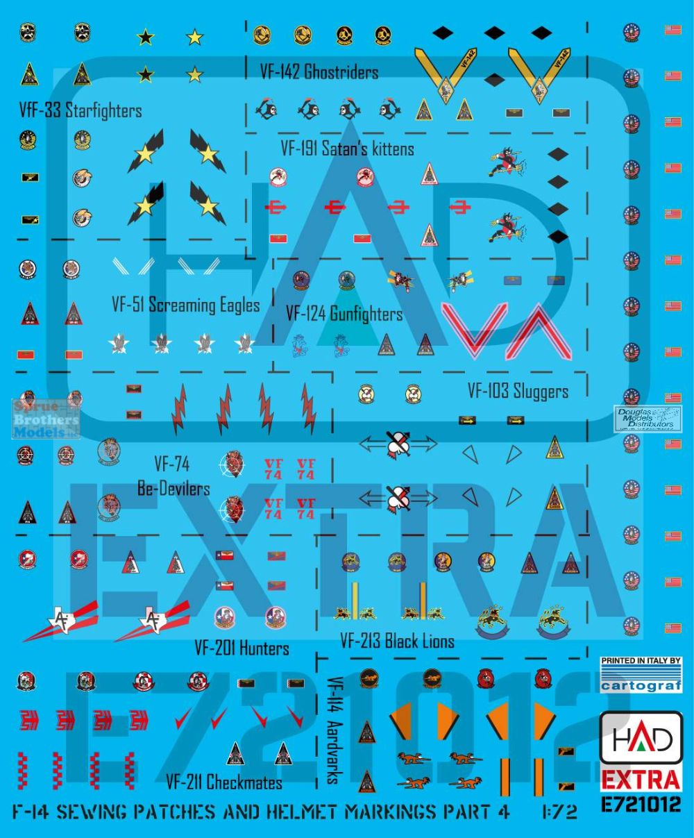 HADE721012 1:72 HAD Models Decals - F-14 Tomcat Helmet & Dress Sewing Markings for VF-33 VF-51 VF-74 VF-103 VF-114 VF-124 VF-142 VF-191 VF-201 VF-211 VF-213