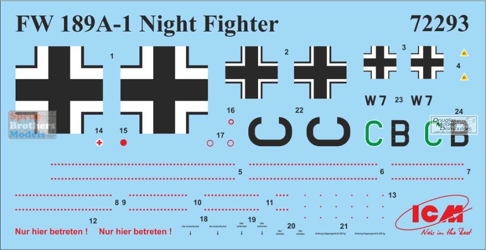 ICM72209 1:72 ICM Luftwaffe Night Fighters (Bf109E-4 Fw189A-1 Do17Z-10)