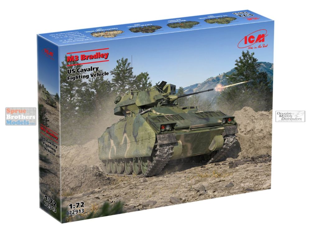 While developing a combat vehicle for mechanized infantry units under the MICV (Mechanized Infantry Combat Vehicle) program, the United States also developed an armored reconnaissance vehicle under the ARSV (Armored Reconnaissance Scout Vehicle) program. In spring 1977, both programs merged into FVS (Fighting Vehicle Systems), creating the unified Bradley Fighting Vehicle platform. The concept included two variants: the M2 Bradley infantry fighting vehicle and the M3 Bradley cavalry fighting vehicle, crewed by three soldiers plus two scouts. The M3 Bradley retained the same primary armament as the IFV* but carried more ammunition—1,500 rounds for the automatic cannon, 4,300 rounds for the machine gun, and 10 TOW anti-tank missiles for heavy armored targets. Equipment included a portable ground surveillance radar, specialized radios, night vision devices, and space in the modified troop compartment for a motorcycle. The M3 Bradley later underwent upgrades to enhance protection and improve firepower.