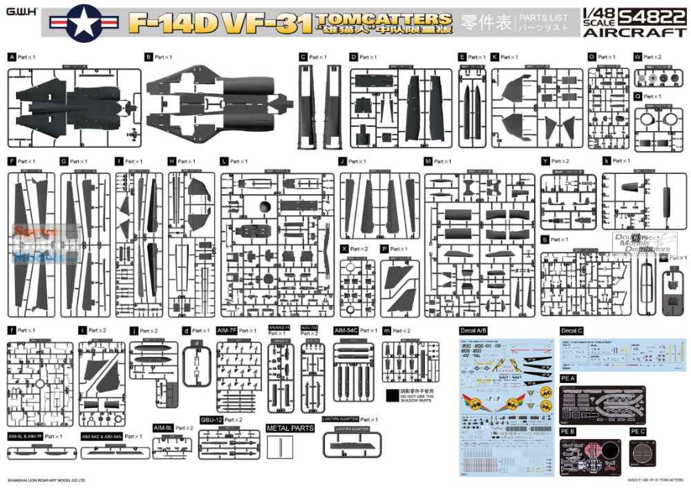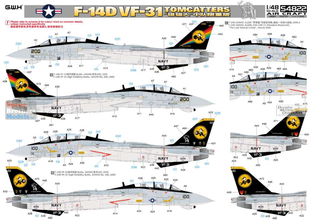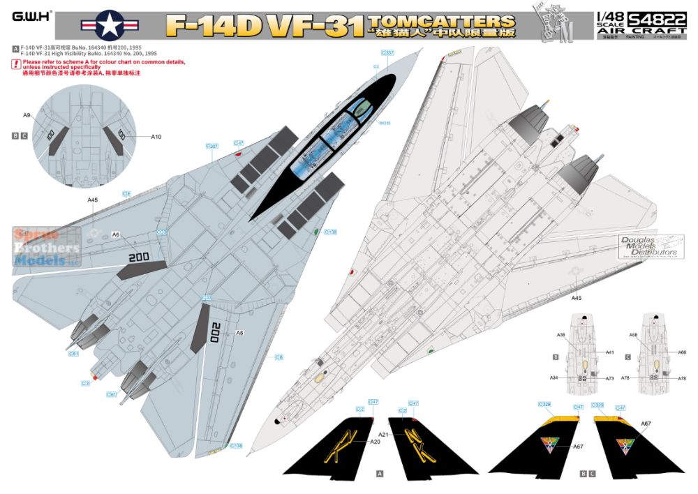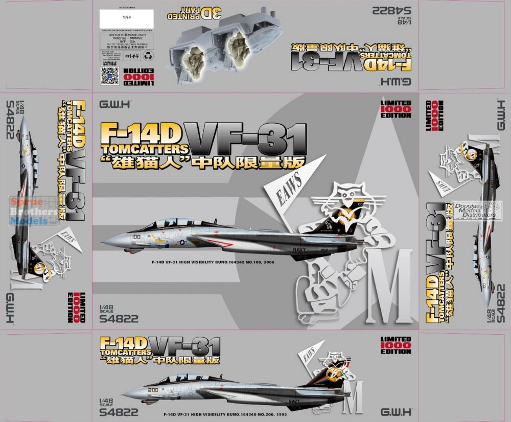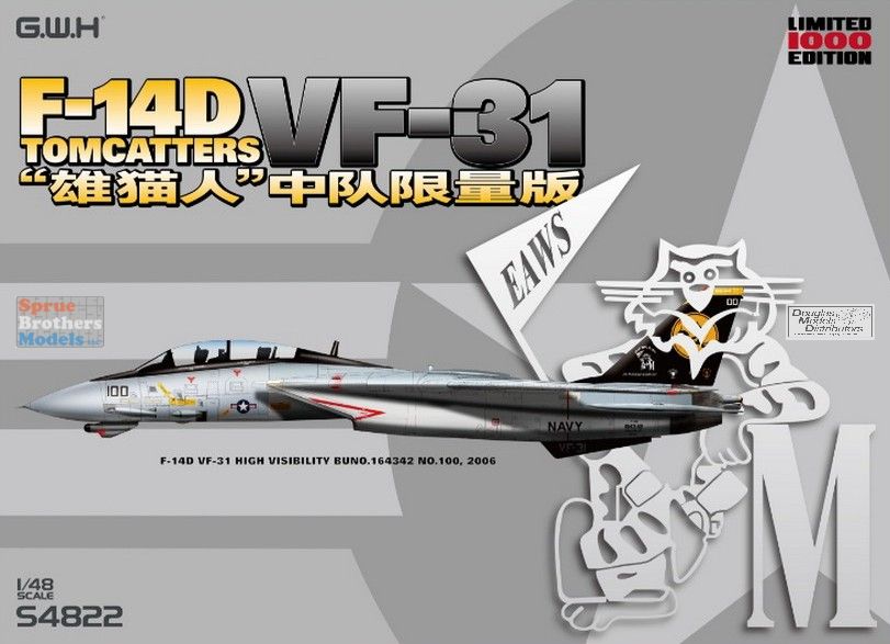 LNRS4822 1:48 Great Wall Hobby F-14D Tomcat 'VF-31 Tomcatters' with Pilot Figures