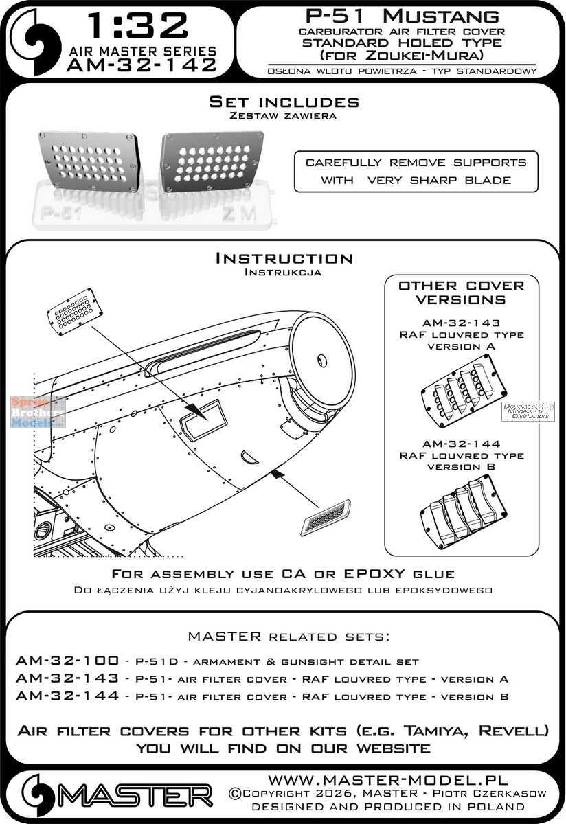 MASAM32142 1:32 Master Model P-51 Mustang Carburetor Air Filter Cover Standard Holed Type (ZKM kit)