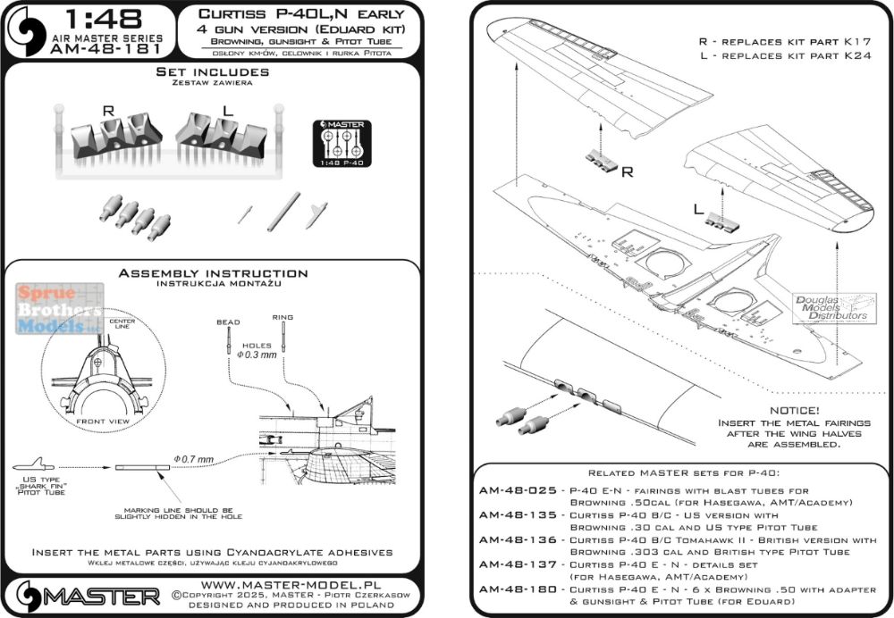 MASAM48181 1:48 Master Model - P-40L P-40N Early Warhawk 4-Gun Version Detail Set (EDU kit)