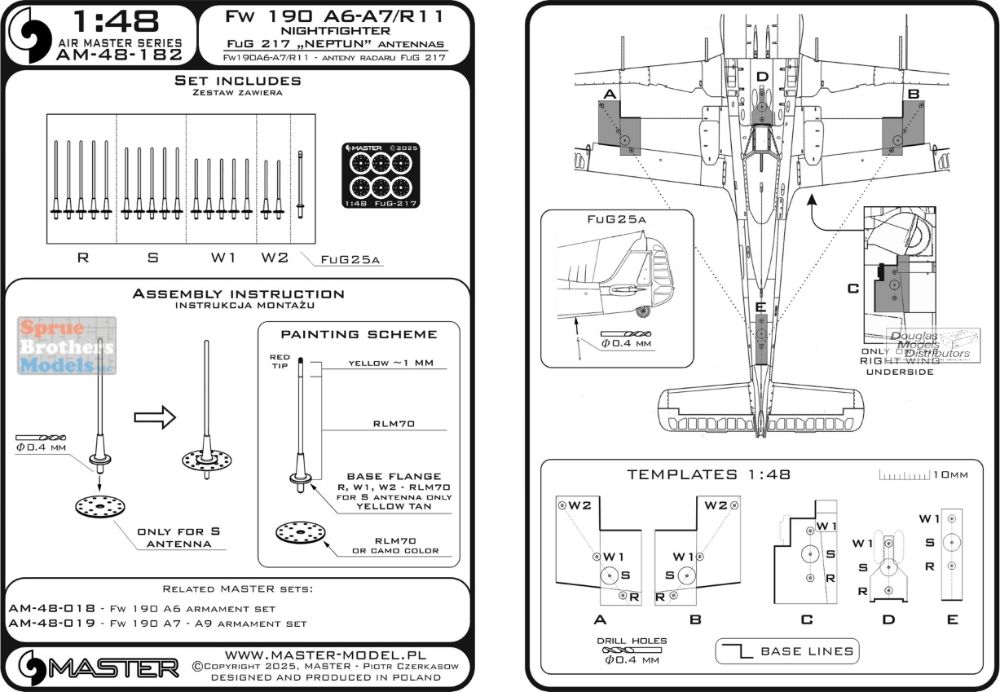 MASAM48182 1:48 Master Model - Fw190A-6 Fw190A-7/R11 FuG 217 Neptun Antennas