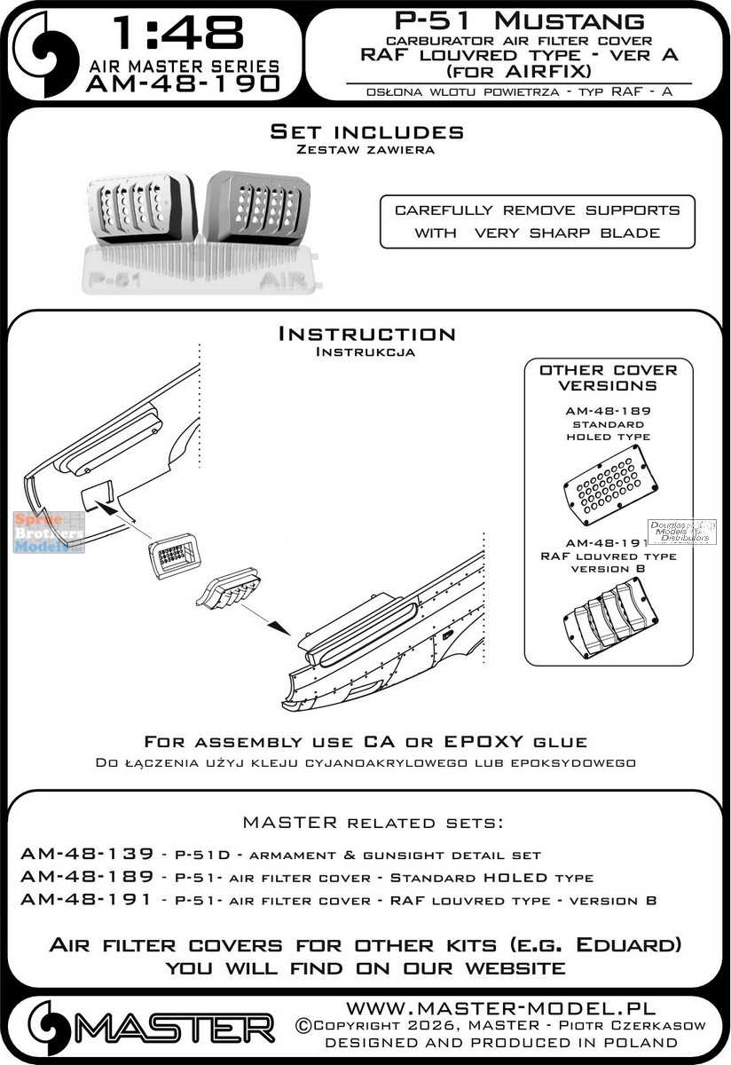MASAM48190 1:48 Master Model - P-51 Mustang Carburetor Air Filter Cover RAF Louvered Ver A Type (AFX kit)