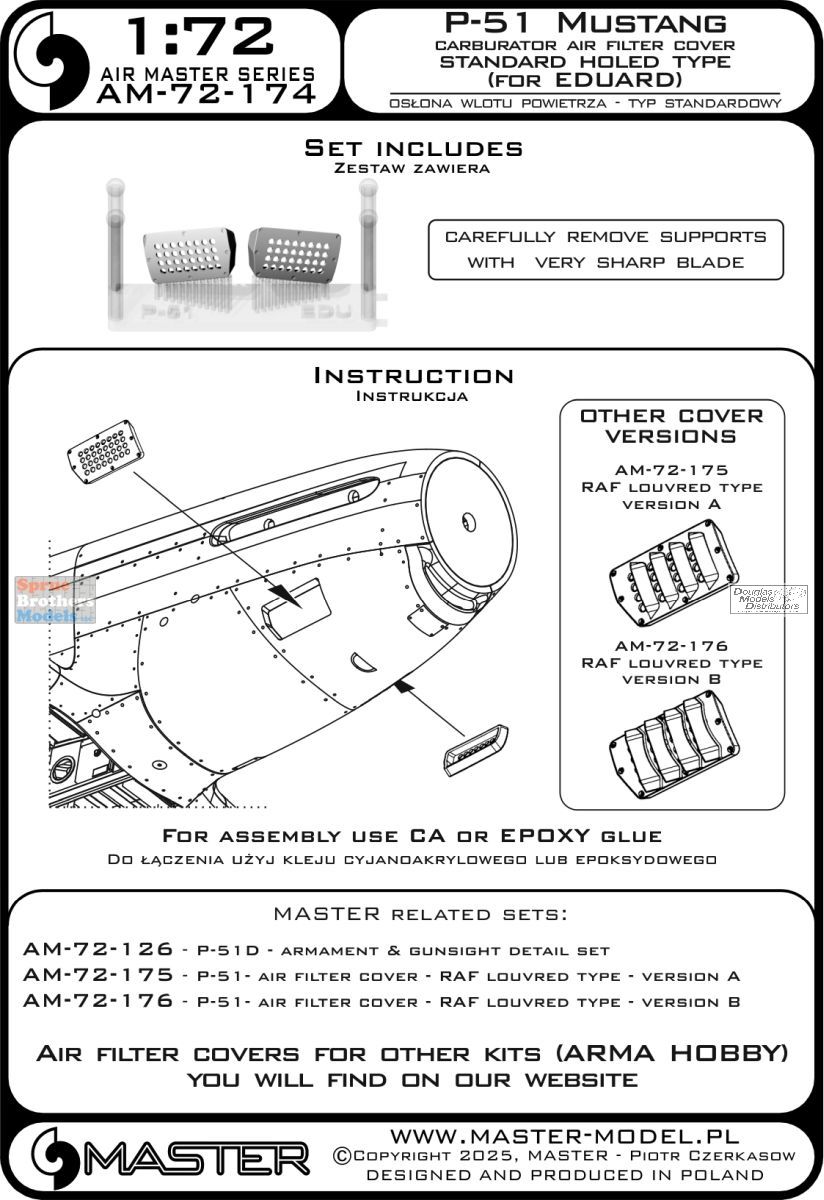 MASAM72174 1:72 Master Model P-51 Mustang Carburetor Air Filter Cover Standard Holed Type (EDU kit)