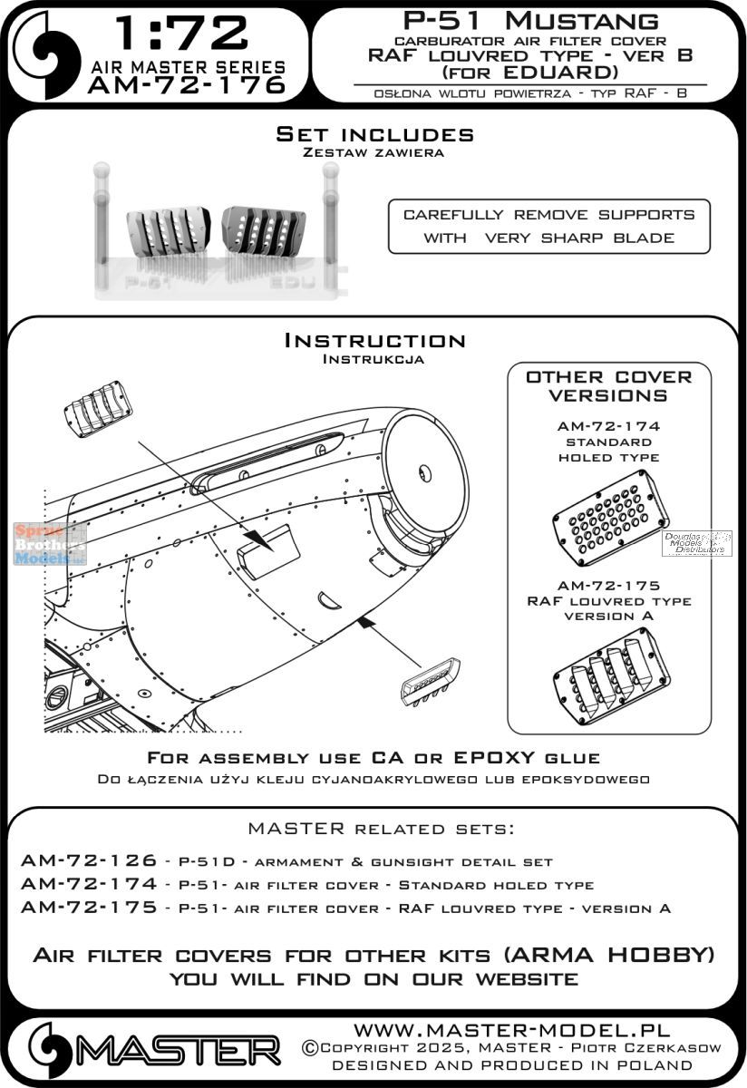 MASAM72176 1:72 Master Model P-51 Mustang Carburetor Air Filter Cover RAF Louvered Type B (EDU kit)