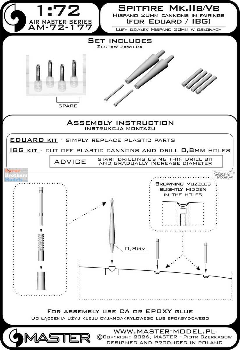 MASAM72177 1:72 Master Model Spitfire Mk.IIb/Vb Hispano 20mm Cannons in Fairings (EDU/IBG kit)