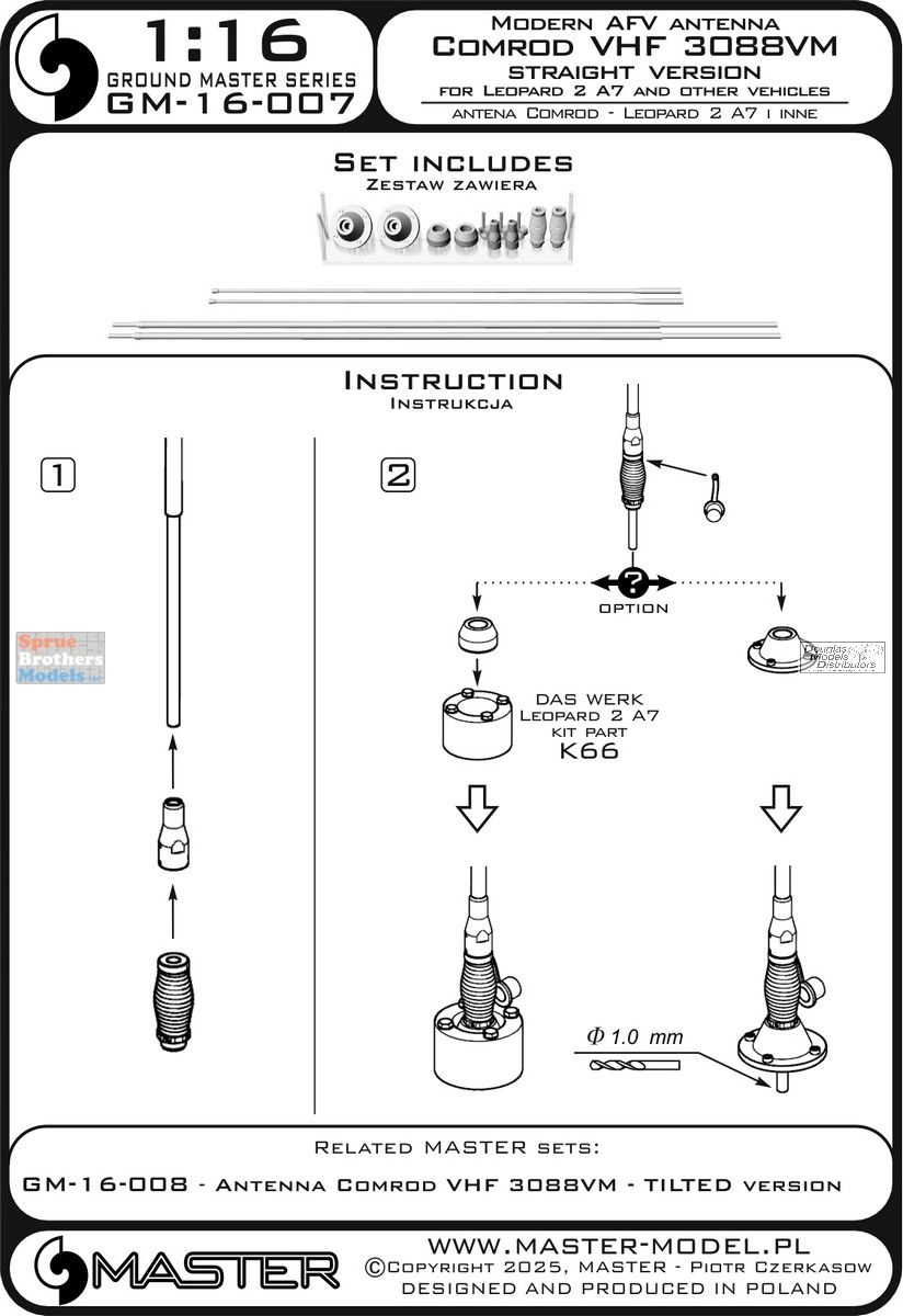 MASGM16007 1:16 Master Model Modern AFV Antenna - Comrod VHF 3088VM Straight Version