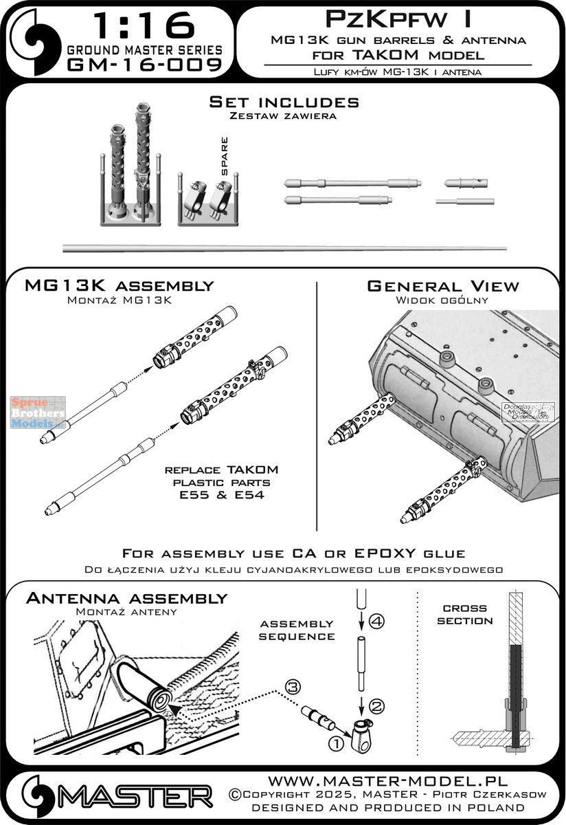 MASGM16009 1:16 Master Model Panzer Pz.Kpfw.I MG13K Gun Barrels & Antenna (TAK kit)